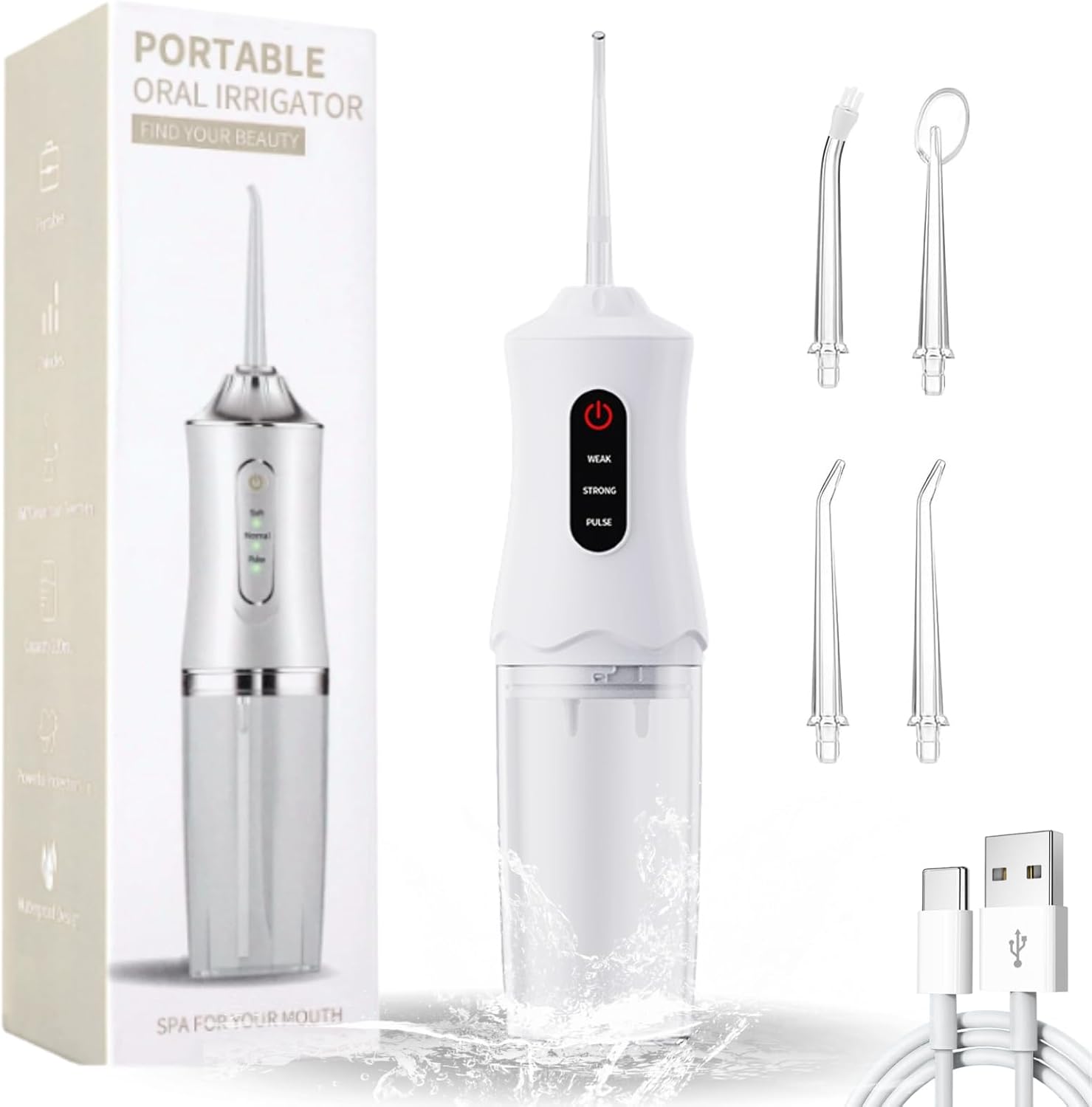 Este modelo portátil es ideal porque puedo usarlo en cualquier lado. La presión del agua es fuerte y deja la boca muy limpia.